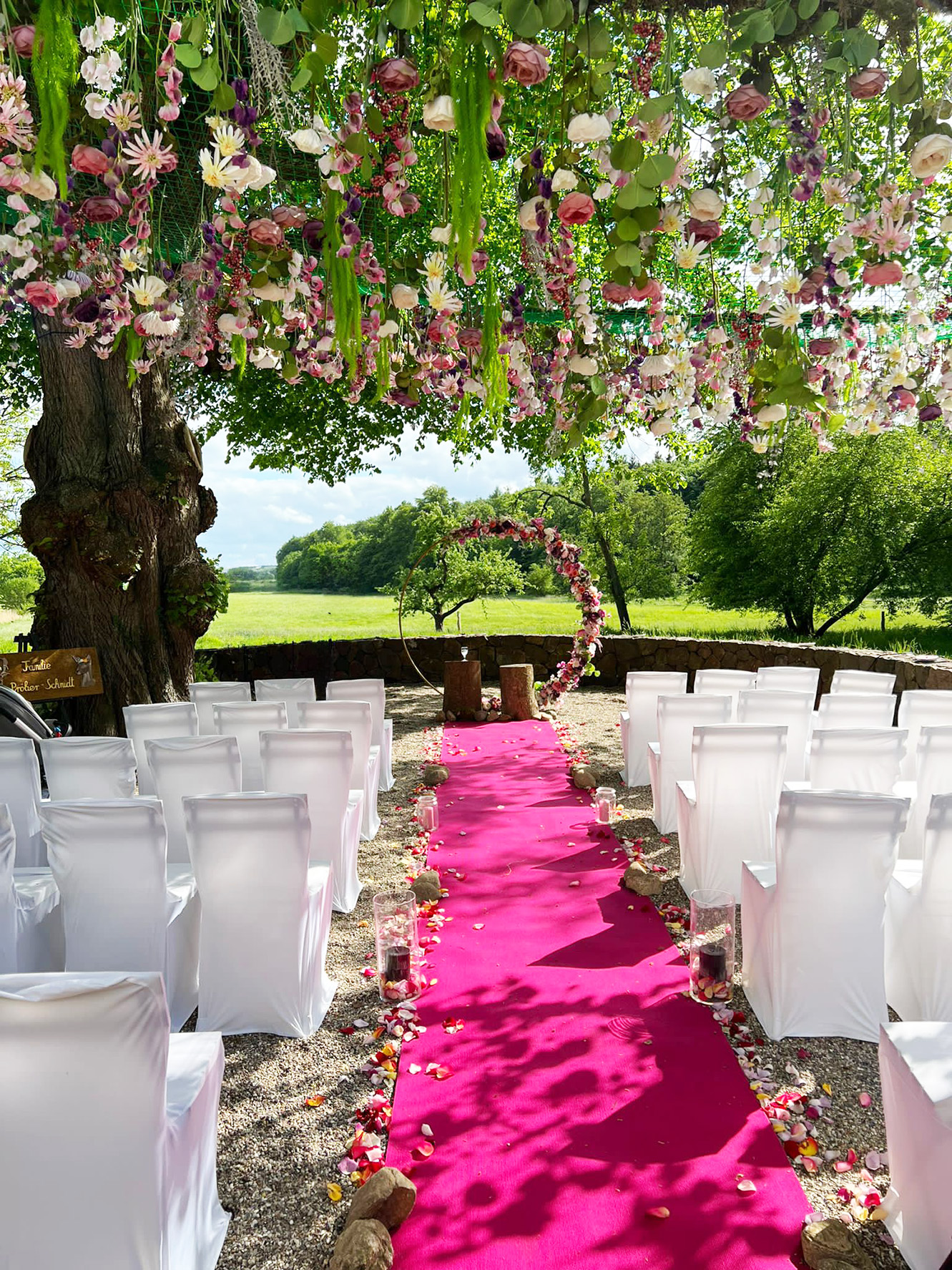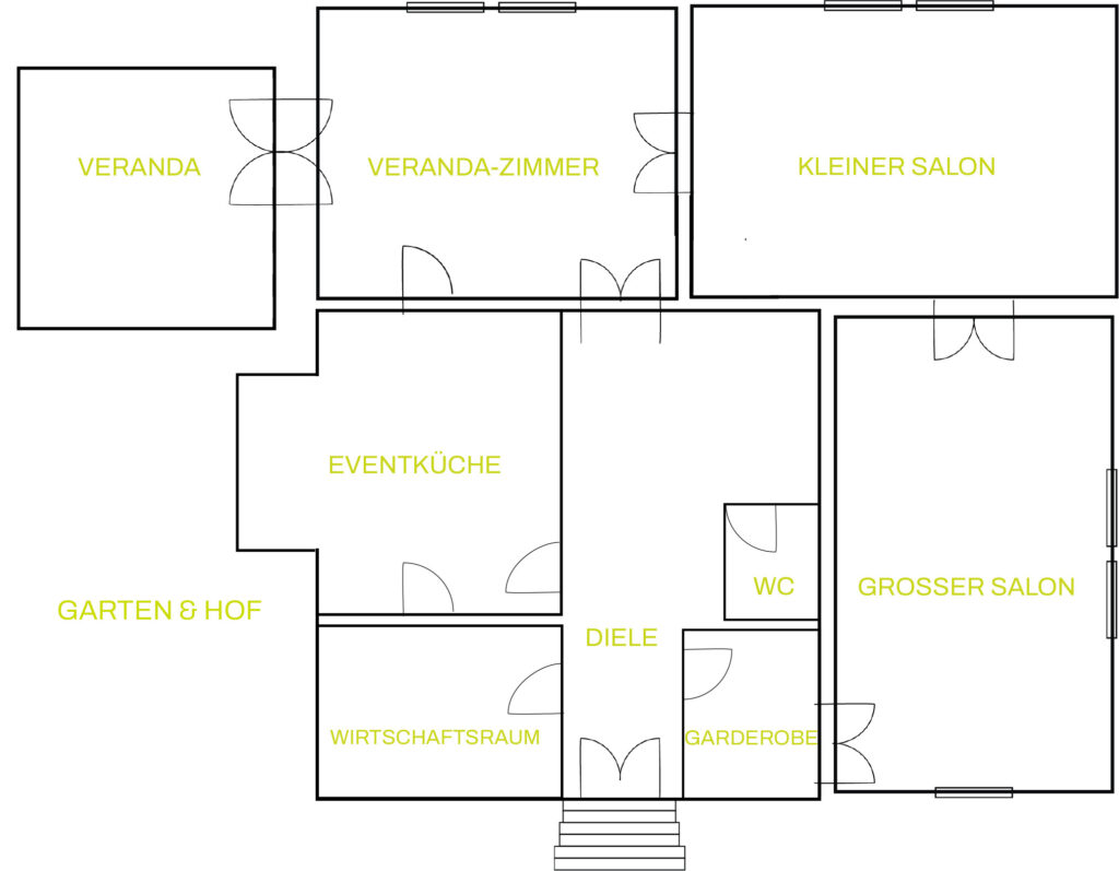 Sowohl das Hofgelände als auch die Rasenfläche des Gartens lassen sich in viele Veranstaltungsformate integrieren und bieten reichlich Platz für Zelte, Bühnen, Spiele und Sitzbereiche.
